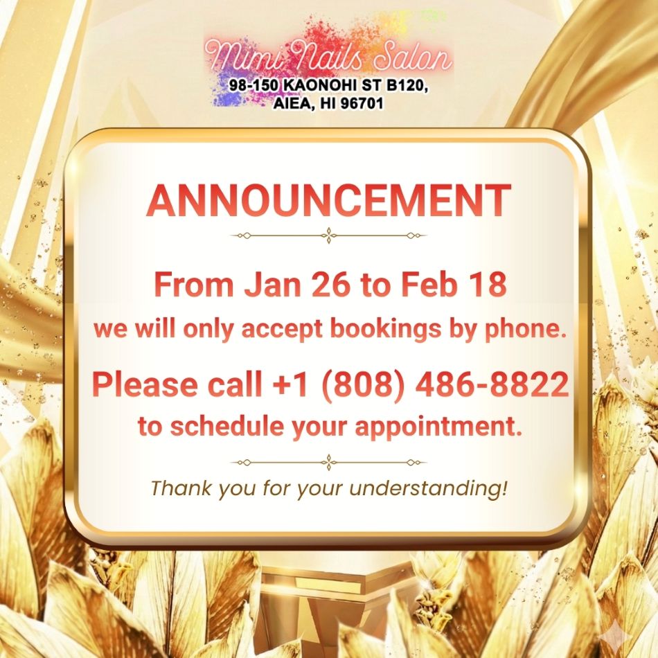 Located at a beautiful place in HI 96701, United States, Mimi Nails Salon offers you the ultimate in pampering and boosting your natural beauty with our whole-hearted, creative & professional staff.